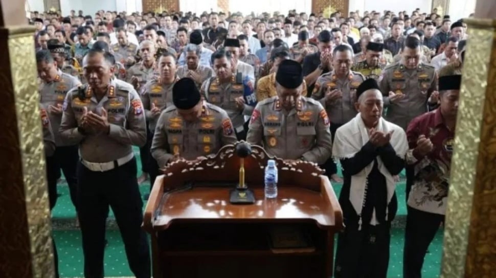 SuaraJatim.id - Jajaran Polda Jawa Timur (Jatim) menggelar shalat ghaib dan mengirimkan doa bersama untuk semua korban banjir bandang hingga tanah longsor yang menerjang Aceh, Sumatera Utara dan Sumatera Barat.