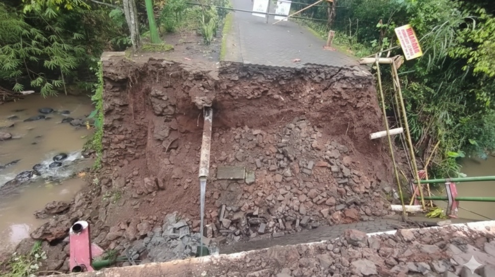 “Hujan sebelumnya sudah diterjang banjir, sudah rusak. Terus pagi ini roboh total. Warga harus memutar, termasuk anak sekolah,” ujarnya, dikutip dari BeritaJatim.